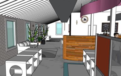A product presentation space in ECU’s Millennial Campus, located on the second floor of the Hughes Tobacco Warehouse. This space would allow students and faculty to display and demonstrate new products to business people.